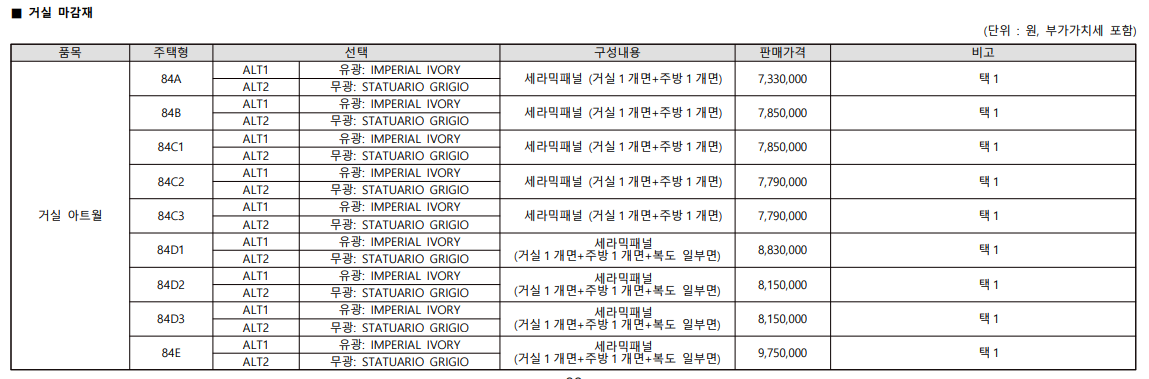 | 84G2(6세대) 분양가 : 404,700,000 ~ 426,000,000 원 | |