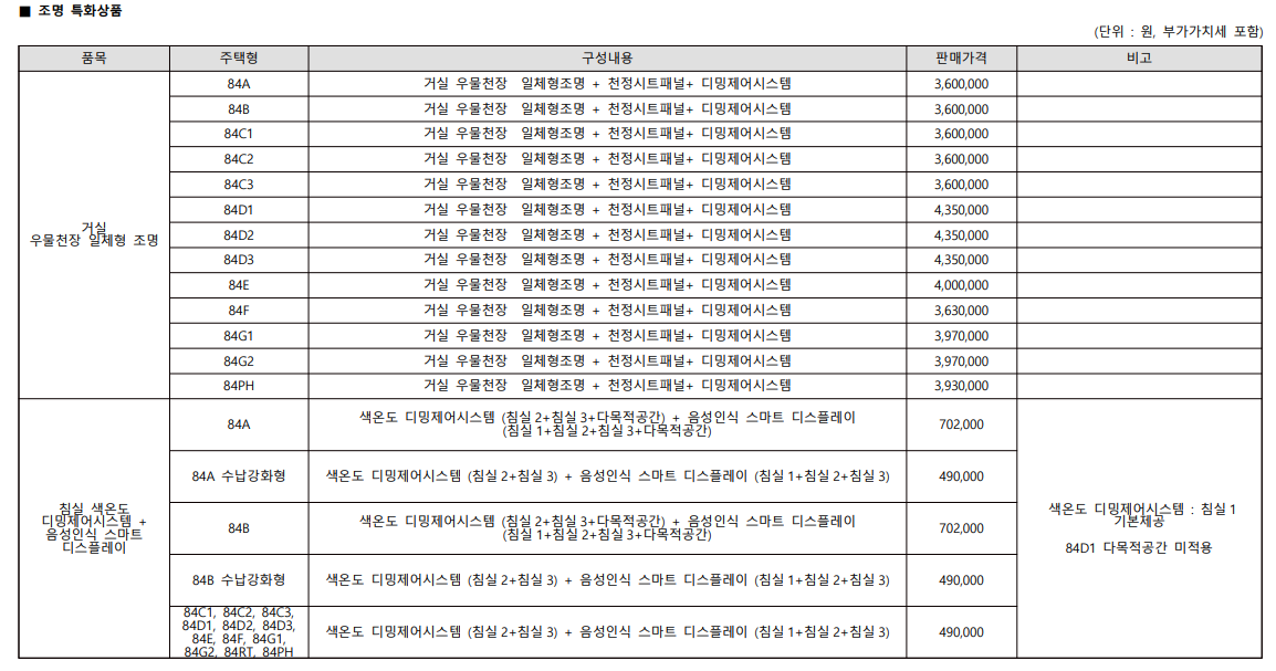 | 84D1(134세대) 분양가 : 387,700,000 ~ 425,700,000 원 | |