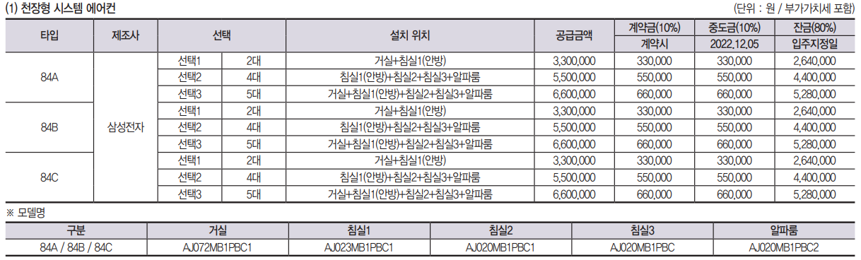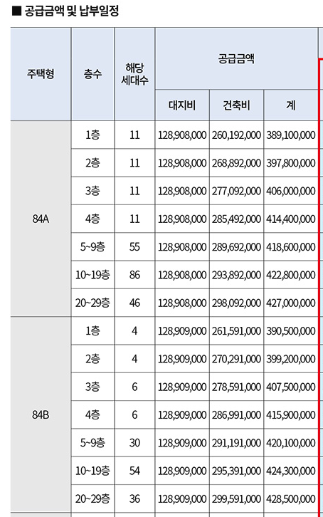 | 84A | 1 ~ 29 층 | 389,100,000 ~ 427,000,000 원 |
