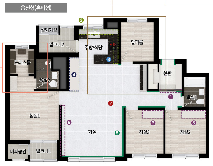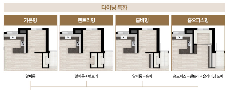 | 84C : 556세대 중 185세대 - 한층 넓어진 다이닝 공간으로 특별함을 더한 공간 |